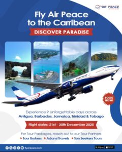 To enhance the travel experience, Air Peace has partnered with leading tour operators, including Tour Brokers International (Nigeria), Sun Seekers Tours (Ghana), and Adansi Travels (Ghana), to design exclusive tour packages for travelers eager to explore the Caribbean.