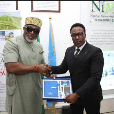 The Director General of the Nigerian Meteorological Agency (NiMet), Professor Charles Anosike, warmly received the Chairman of United Nigeria Airlines, Chief Obiora Okonkwo who was